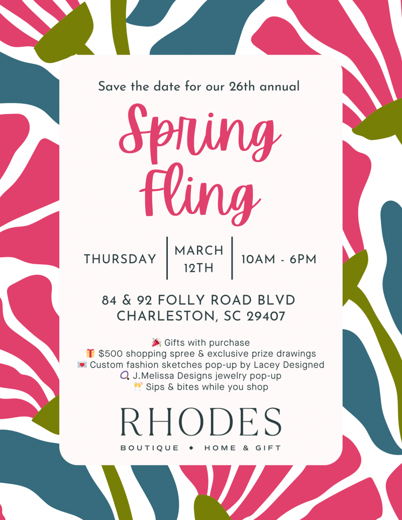 Hey y’all!  Get ready for the most fun day of the season! Mark your calendars and join us for our 26th annual Spring Fling on Thursday, March 12th, from 10 to 6!