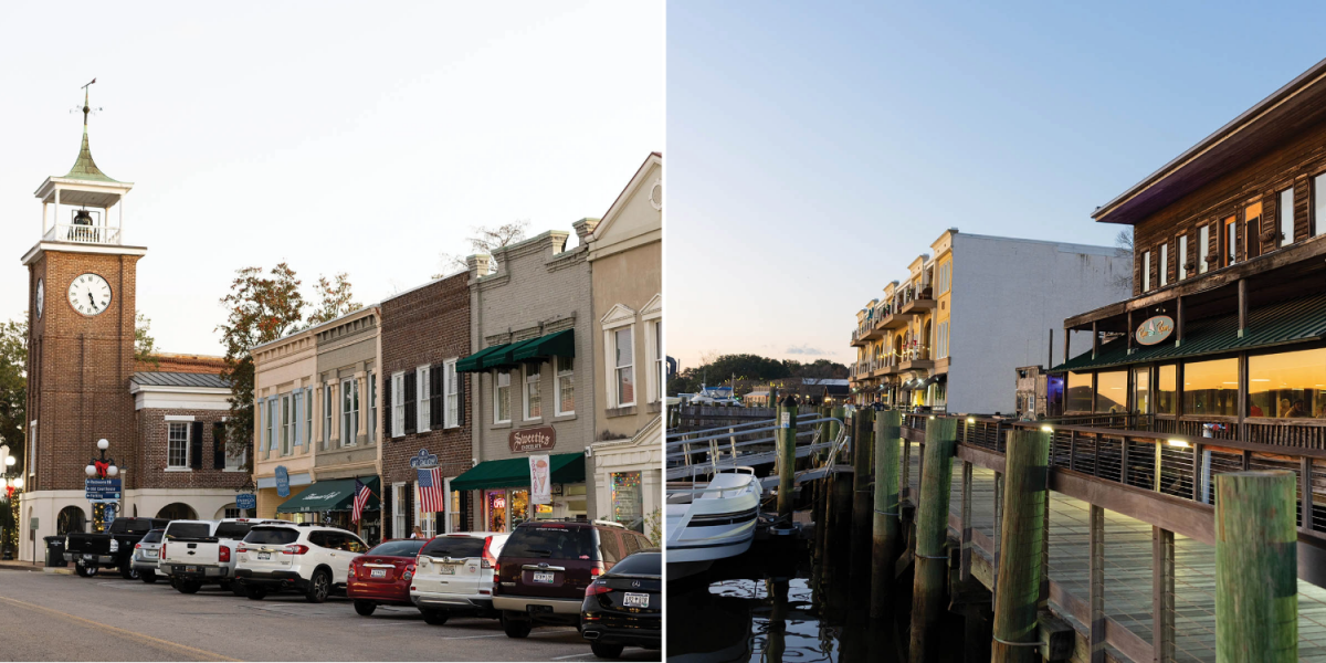 Downtown Georgetown is enjoying a rebirth with new restaurants, boutiques, and a charming hotel; The Harborwalk (right) accesses restaurants and watering holes on the Sampit River.