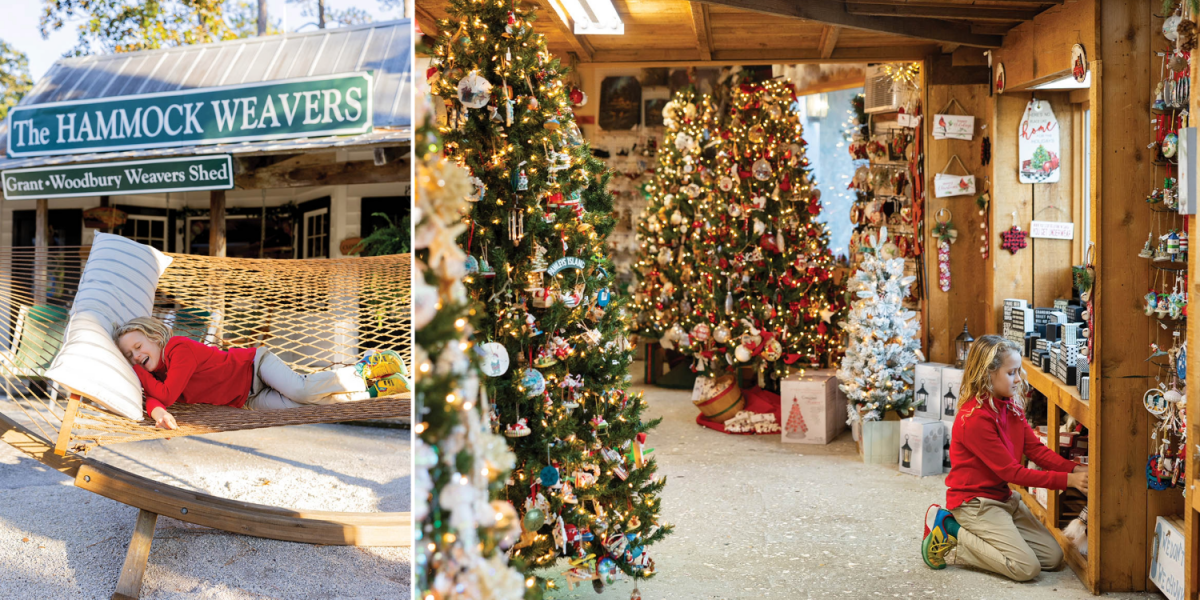 The Hammock Shops Village is a great spot for last-minute holiday shopping or lounging after a hearty lunch; the holidays never end at the Christmas Mouse store.