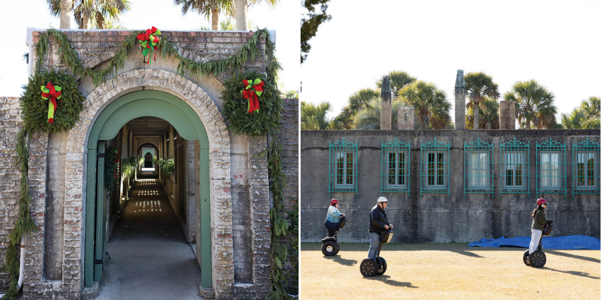 Christmas is a special (and uncrowded) time to visit Atalaya Castle at Huntington Beach State Park; a Segway tour rolls past