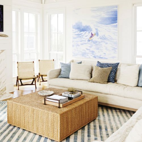 Visiting Lynne and Steve Hamontree today, it’s easy to get the impression they’ve been happily settled in their Sullivan’s Island abode since forever. In the airy second-floor living room, Lynne tucks into her favorite chair—one of two sculptural egg-shaped numbers by McGuire that ooze Bohemian chic—and talks excitedly about the room’s design, zeroing in on a newly acquired painting that hangs nearby. “It’s by Kim Frohsin, a Bay Area artist and one of my idols,” she gushes. That’s serious praise coming from Lynne, a noted artist herself who recently landed a deal with Serena & Lily—this fall, the posh retailer will carry a run of her ink line paintings of nude figures. Ask husband Steve, a California-raised surfer who loves the laid-back culture and cresting waves of his home state, to point out the house’s best features, and he might direct you to the screened-in porch, where you can catch the ocean breeze, or the entryway, where one of his boards is displayed as art. Either way, the residence, with its cool coastal palette and art-filled rooms, is a thoughtful reflection of its owners, right down to the surf books piled on the coffee table. But it wasn’t always this way. The couple is on the tail end of a two-year interior overhaul—led by area design pro Cortney Bishop—that helped them turn a spec home into the uber-personalized oasis of their dreams.