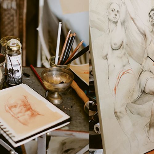 The front wall of the historical home that houses Fantuzzo’s studio is swallowed by a huge horizontal canvas—paper actually—on which Fantuzzo is applying sepia-toned oils with a dry-brush technique. The effect is wispy and ethereal, thanks to quick flicks of her wrist. To bring more light into the composition, she rubs the paint with a gob of kneading eraser—the artist’s version of the delete button. “Atmosphere and light are essential to my imagery, no matter the subject.” says Fantuzzo, an Endicott, New York, native who loved art early on, dabbling with her first set of paints and brushes at age 12.