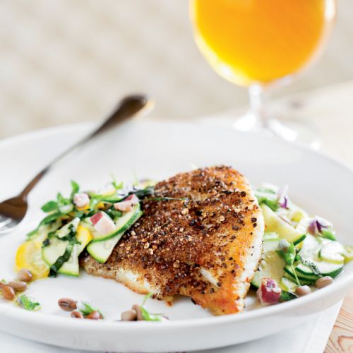 A typical night might reveal a silky puree of chickpeas, thinned lightly with white stock and studded with small creek shrimp and cubes of rich chorizo for a satisfying first-course soup. Perhaps this is followed by jet-black risotto coupling squid and swordfish as deeply colored as the rice. A single grilled shrimp announces the theme, and a verdant ring of young, peppery olive oil at the base of the plate brightens the subtle, savory tint of cuttlefish ink. Flaked salt cod swims alongside fresh grape tomatoes and slivers of spring onion with just a drizzle of oil and lemon to bathe them. The plates are stark white. The music is jazz.