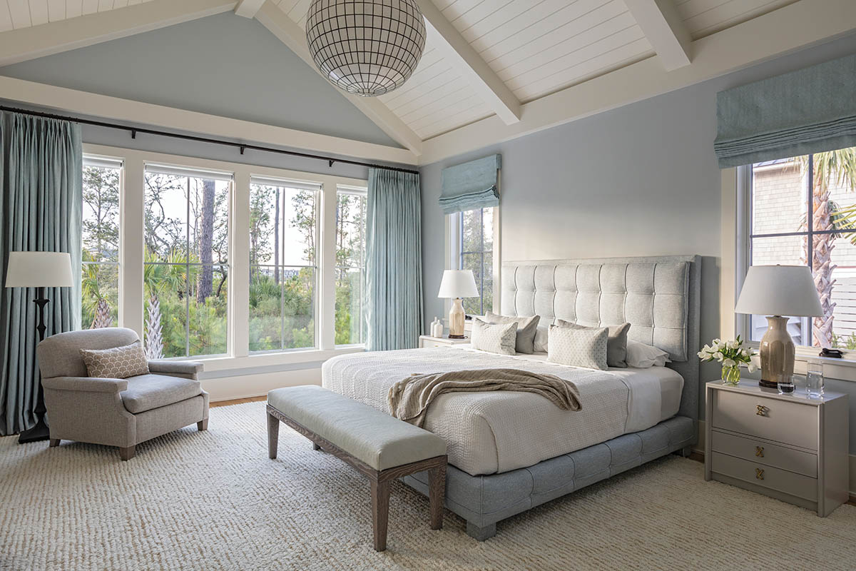 Located on a corner parcel, the 5,000-square-foot, four-bedroom home captures views of the marsh and the Wando River beyond. A wide front porch feels welcoming and cozy, and inside there’s ample room to spread out; everyone has their own space, even French bulldogs, Winnie and Evie. “I call it Lowcountry Cape,” Mary says, “a little New England, a little Charleston—timeless.”
