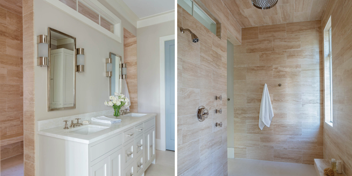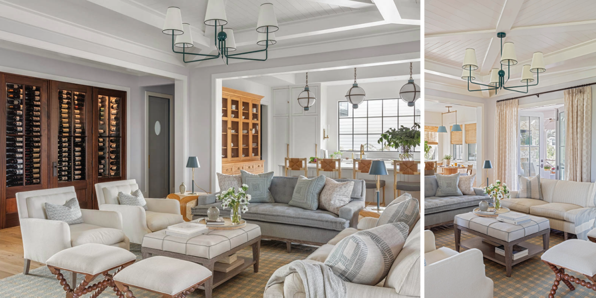 Collins describes that story as “calm, curated, creative, and classic.” Her goal was to make the home “beautiful, livable, and unique to Mary and Chris.” That translated into a subtle palette accentuated by pops of color, as well as carefully selected lighting and custom furnishings.