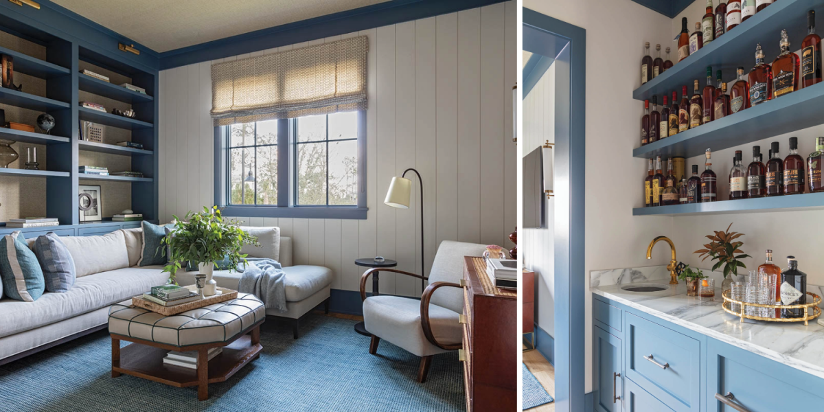 While the Cormiers were leaning toward a clean, white aesthetic, much like their Cape Cod house, Collins convinced them to embrace color. “Subtle hues throughout the home add depth,” she says. “We focused on saturated blues and greens to enhance the tones already throughout the home.”