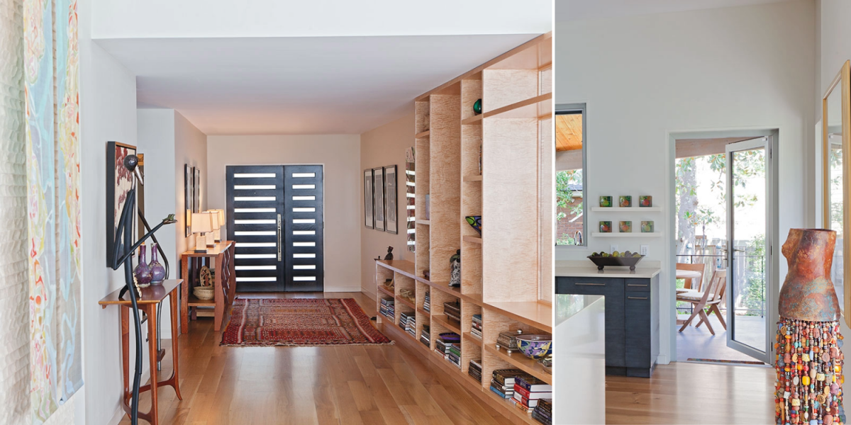She lived in the home for a while, paying careful attention to what she wanted from a renovation. Ultimately, she craved an art-filled residence with outdoor rooms for communing with nature and a scale that, while cozy enough for one or two, could accommodate a crowd during her fundraising fêtes. But she didn’t want to tear down the existing structure or build an addition that towered over nearby homes. “I wanted to be able to live with my things in a house that worked for me, but I also wanted to honor the neighborhood,” she explains.