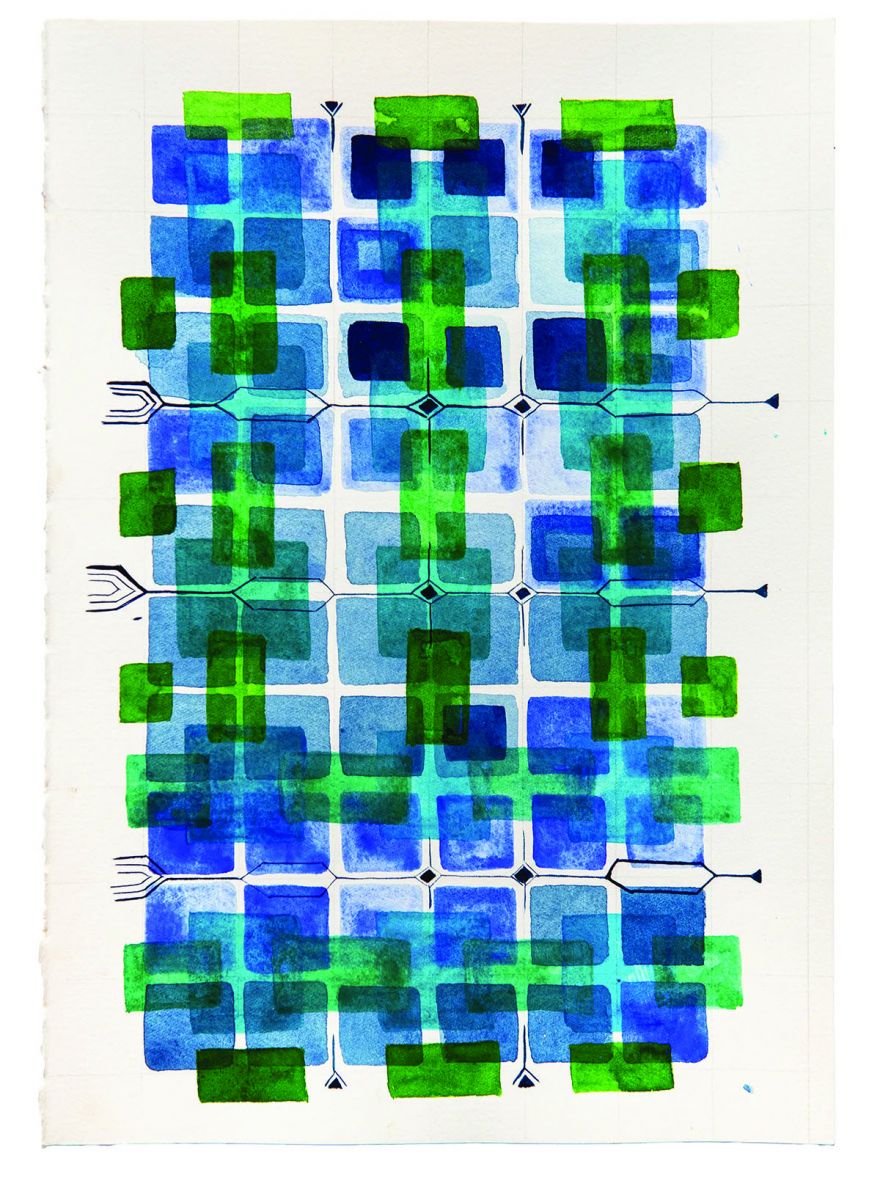 On the studio floor, she has laid out works on paper involving patterns informed by folk art and geometry in nature. “I want to write poems about my love for God through patterns, through colors, so that anyone can read them no matter what language they speak,” she explains, adding that her hope is to “speak about the hardships without making someone feel the hardship.” What is particularly striking about her practice is the purity of its aim: While she loves showing her work, her overarching aim in creating it is being close to God.