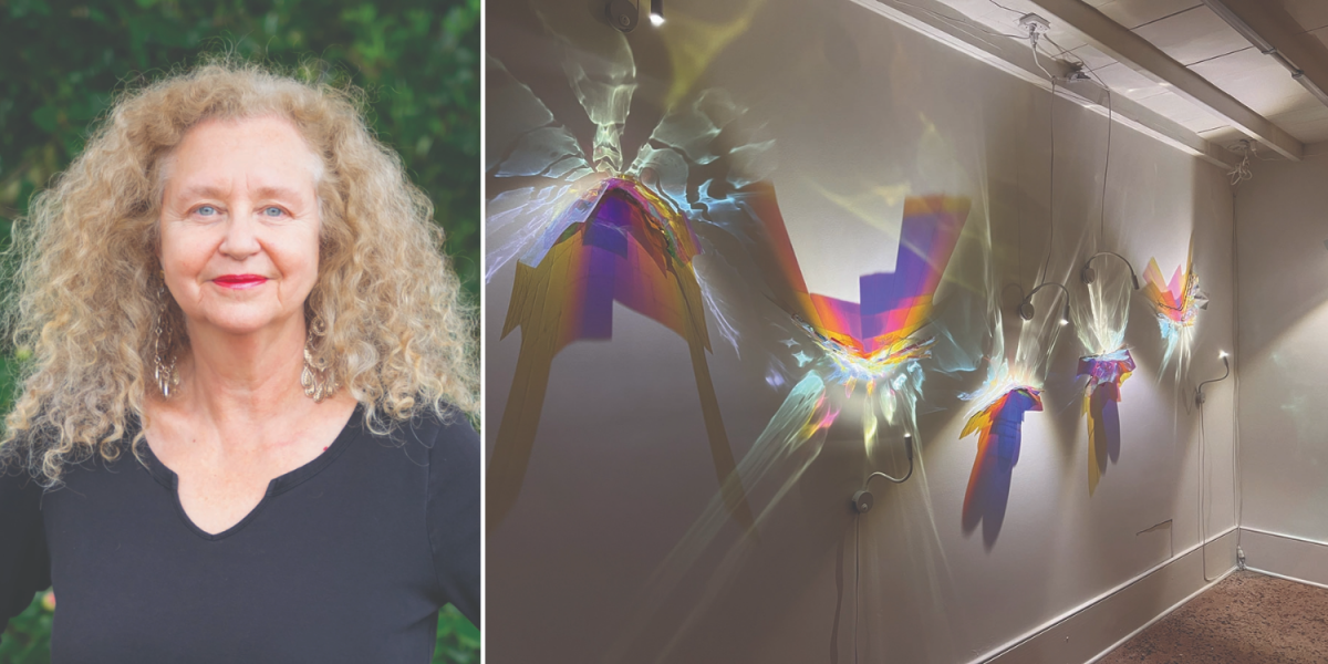 Cheselyn Amato (fall 2024) and her “Radiance and Resplendence” installation, light sculptures on mylar film