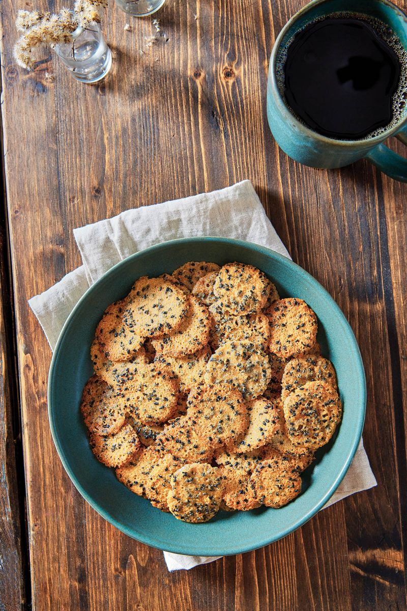 Common at local cocktail parties, these paper thin, subtly sweet cookies feature toasted benne seeds, which were introduced by enslaved Africans in the early 18th century (“benne” is Bantu for “sesame”). There are savory varieties, as well as sweet ones, such as those yielded by this recipe from Mastering the Art of Southern Cooking (Gibbs Smith, 2012) by Nathalie Dupree and Cynthia Graubart.