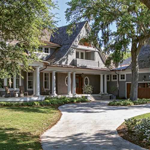 Benjamin Boyd of Marsh Contracting, Coast Architects, and Elebash worked together to open up the traditional floor plan of segmented rooms to better capture the home’s exceptional views. Arches were banished, columns came down, and windows were relocated to afford wider vistas of the shrimp boats and Ravenel Bridge. A steel beam was installed in the kitchen to support expanding the original sunroom, dining room, and formal sitting room into one large, open living space where the scenery shines from every corner. “The end result welcomes in the home’s idyllic environment while accommodating the needs of this social family,” says Elebash. “We wanted to make it more current while remaining timeless.”