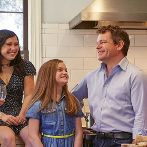 PHOTO: After a busy week, pastry chef Andrea Upchurch (left) joins husband Nate and son Dewey for a relaxed lunch of quiche, lemon cake, and gin fizzes.