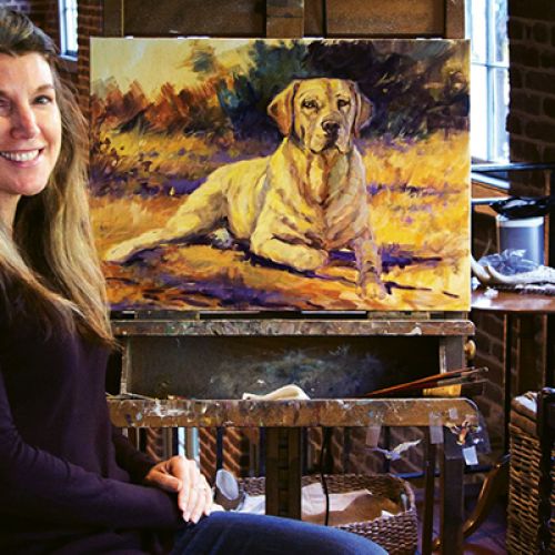 Pet project: I’m obsessed with animals. When I work on a commissioned portrait, I ask clients for as many pictures as possible that capture the animal’s personality. I like open-mouth photos, goofy faces—but the eyes are most important. I love when a client allows me to go wild with color.