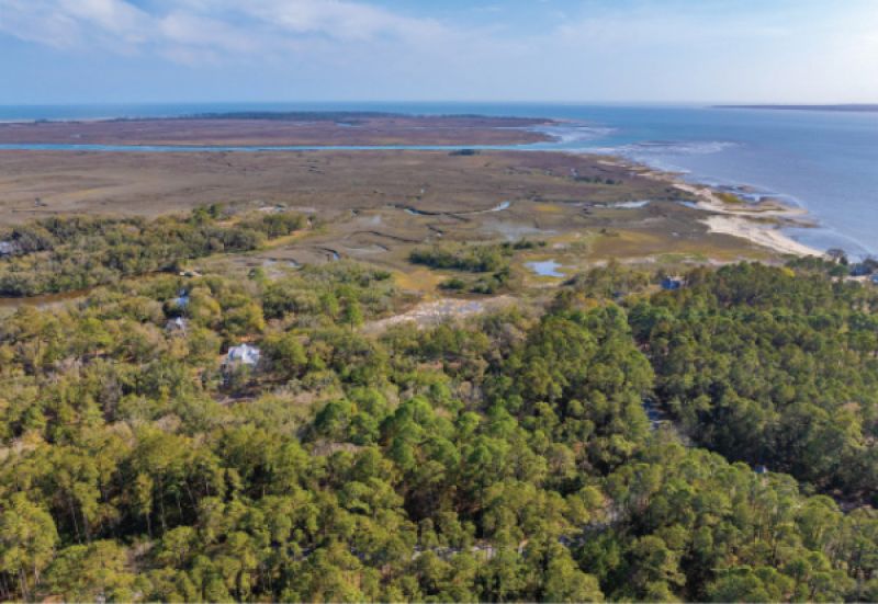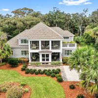 The home is expertly designed to blend in with its surroundings while offering spectacular marshfront views