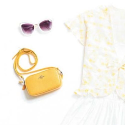 Yellow shines in many of this season’s collections, but Lela Rose’s ensemble combining the color with crisp white feels especially suited to the holy city. We kept the florals—and the flounce—but toned down the palette