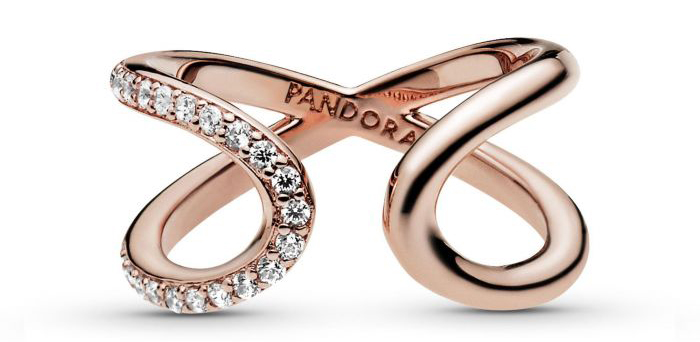 Pandora Rose “Wrapped Open Infinity Ring” in 14K rose gold-plate, $90 at REEDS Jewelers