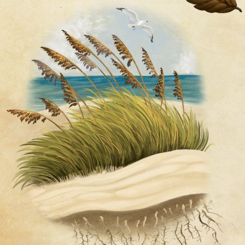 The early 18th-century British explorer Mark Catesby called this tall, slender perennial grass the “sea-side oat,” observing that it was found “on sand hills; so near the sea, that at high tides the water flows to it.” Thriving in salty environs, Uniola paniculata is integral to beach ecosystems for