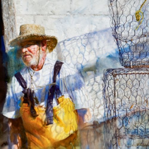 Sally named the tile in the den “Palm Beach”—“I was going for a sophisticated, indoor garden room,” she says. The painting of the smoking wolf, by Montana artist Rocky Hawkins, once hung in the couple’s New York cigar bar, Cafe Aubette.