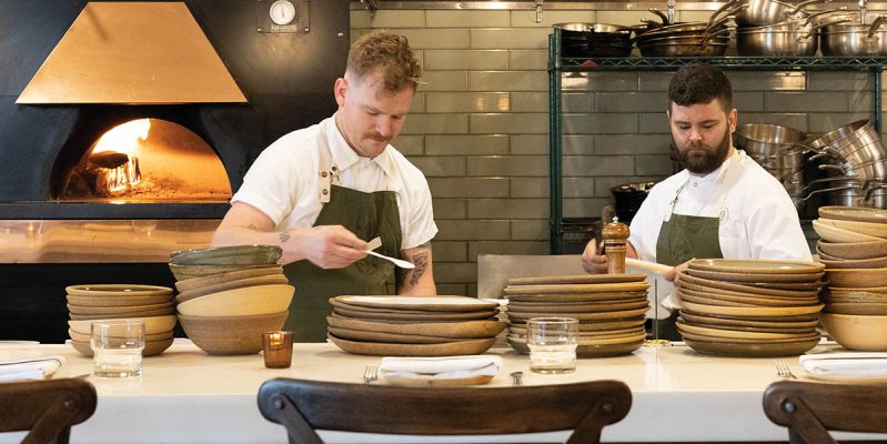 Chef-owner Mark Bolchoz (left) and chef de cuisine Alex Fagan in the open kitchen