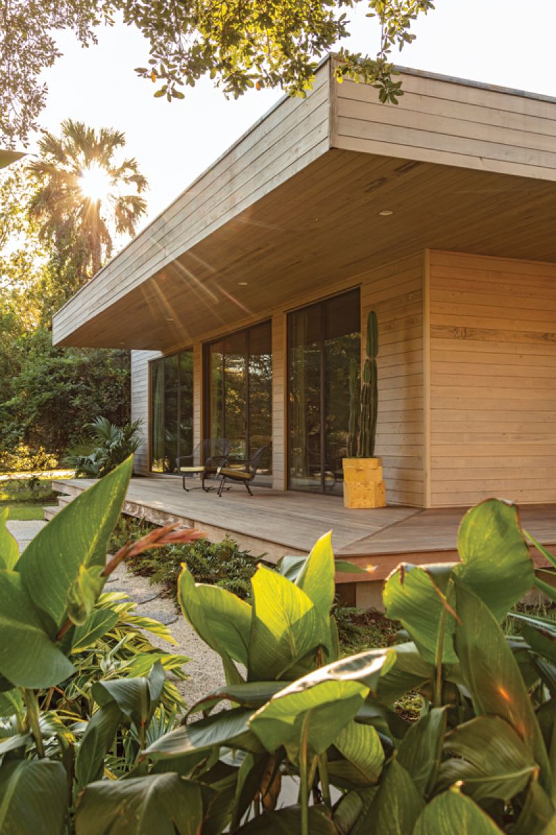 midcentury vibes: Working with friend and architect Johnny Tucker, Angie Hranowsky built a modern home in West Ashley’s Old Windermere neighborhood that Architectural Digest described as “a boxy, low-slung house with a bit of Frank Lloyd Wright in its DNA.” They cloaked it in cypress siding, a wood native to the South, and surrounded it with a lush tropical garden designed by landscape architect Katie Duncan.
