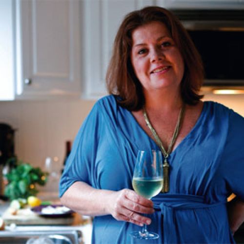 The group settles in for appetizers: table water crackers layered with goat cheese and homemade hot pepper jelly. The warmth from the ancho and chipotle chiles balances the cheese in this creamy, robust snack that even draws the attention of young Milo.